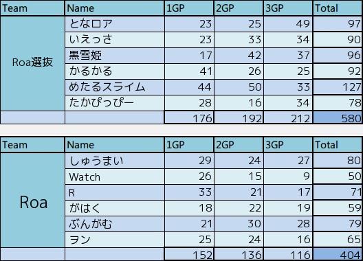 ROAチーム内TAランキング